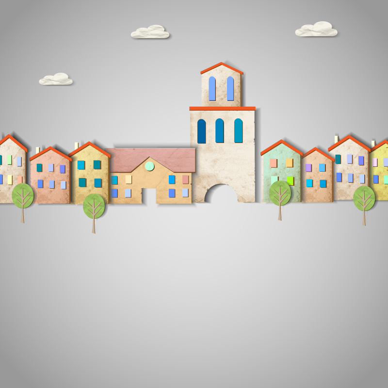 EPS格式,含JPG预览图,关键字:剪纸,云朵,树木,街道,楼群,城市,插画,背景,小镇,矢量图...