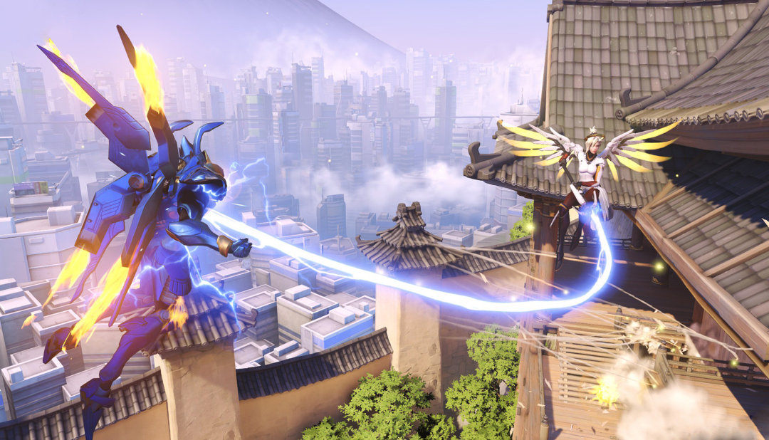 在《守望先锋》中,拥有超强技能的强力角色在各位熟悉却又陌生的战场上厮杀。在伦敦鹅卵石铺成的大街上,用传送能力躲开一枚袭来的火箭,同时你的盟友冲向一辆悬空双层巴士。当一名在暗中的弓箭手准备放暗箭时,为你的盟友架起防护盾,随后在高科技金字塔下的集市中追踪这名狡猾的杀手。