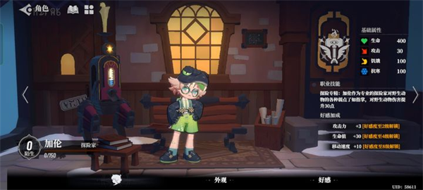 探险家,外号鳄鱼,技能是砍动物加伤害,动物会掉兽皮和兽肉,加仑可以通过打动物加快发育,推荐度A