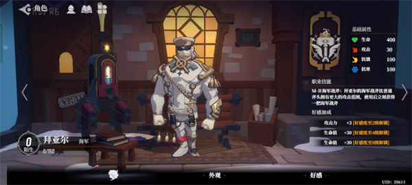 海军上校,外号海军,技能是自带海军战斧,相当于加强了攻击范围的金斧,省下了制作斧子的材料,前期更是横着走,打的队友对手全都死光,正面作战能力很强,推荐度S