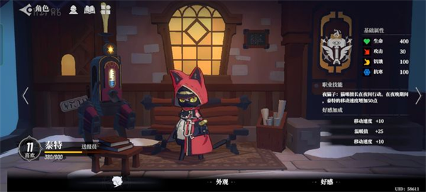 送报员,外号黑猫,小红帽,技能是在夜里加速,如果泰特玩好了会是非常厉害的存在,因为白天无法打人,所以不管是作为狼人还是平民,在夜里都是黑猫的主场,做什么都比别人快一步,推荐度S