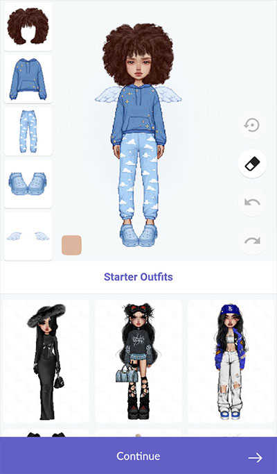3、人物右侧有上一步和下一步,橡皮可以撤销角色身上的一切装扮。