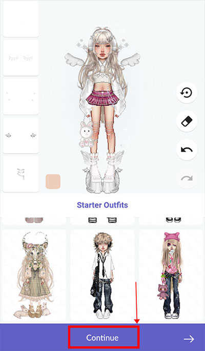 4、装饰完成后点击底部“continue”箭头!