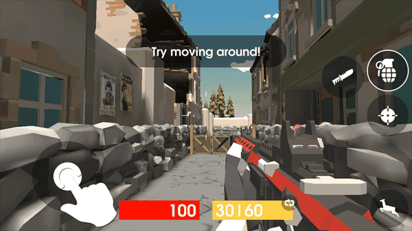 2、左侧摇杆可以控制角色的移动方向,右侧可以瞄准或切换近战武器、投掷物。