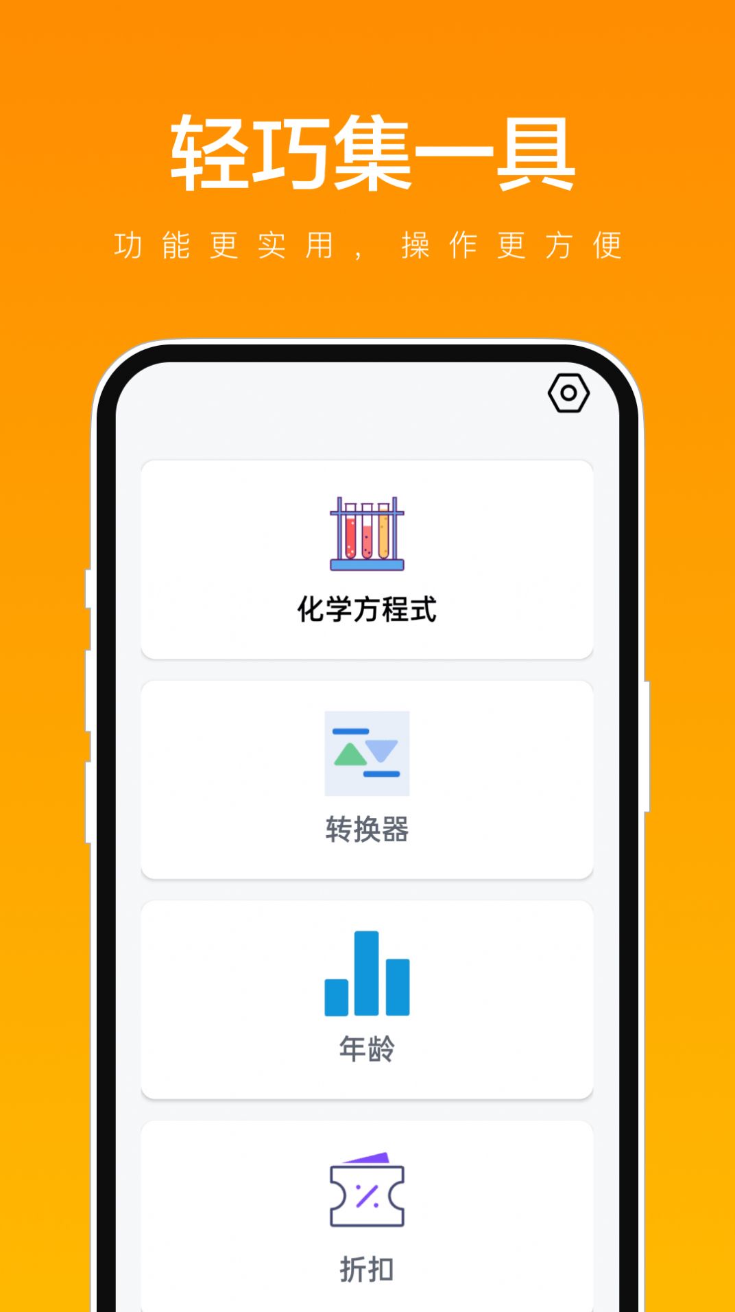 轻巧集app手机版是一款聚合众多实用工具的工具箱,包含各类实用小工具。这些小工具依据不同用途详细分类,能在多样场景下使用,为用户带来极大便利。而且,所有工具皆可免费使用,无需任何费用,操作也十分简单,极易上手。
