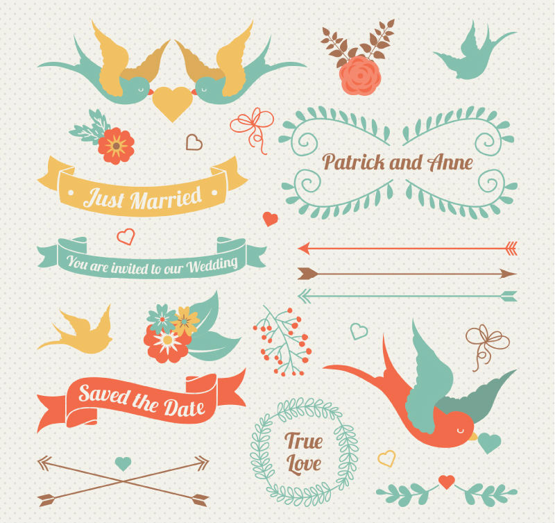 AI格式,含JPG预览图,关键字:爱心,婚礼,花朵,丝带,箭头,装饰,树枝,花枝,花纹,箭头,矢量图...
