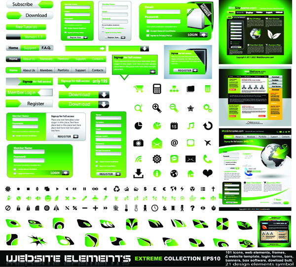 EPS格式,含JPG预览图,关键字:矢量网页设计元素,绿色,按钮,图标,登陆框,对话框,导航,装饰元素,,矢量图...