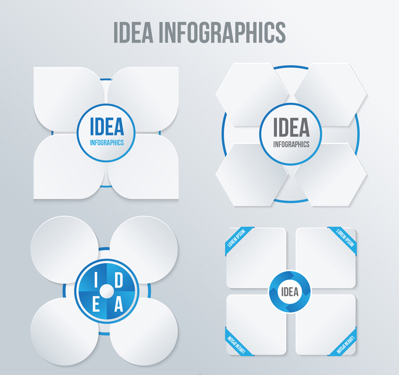 4款白色花形信息图元素矢量素材