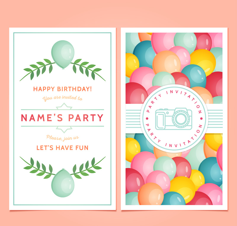 AI格式,含JPG预览图,关键字:树枝,气球,派对,邀请卡,照相机,生日快乐,矢量图...