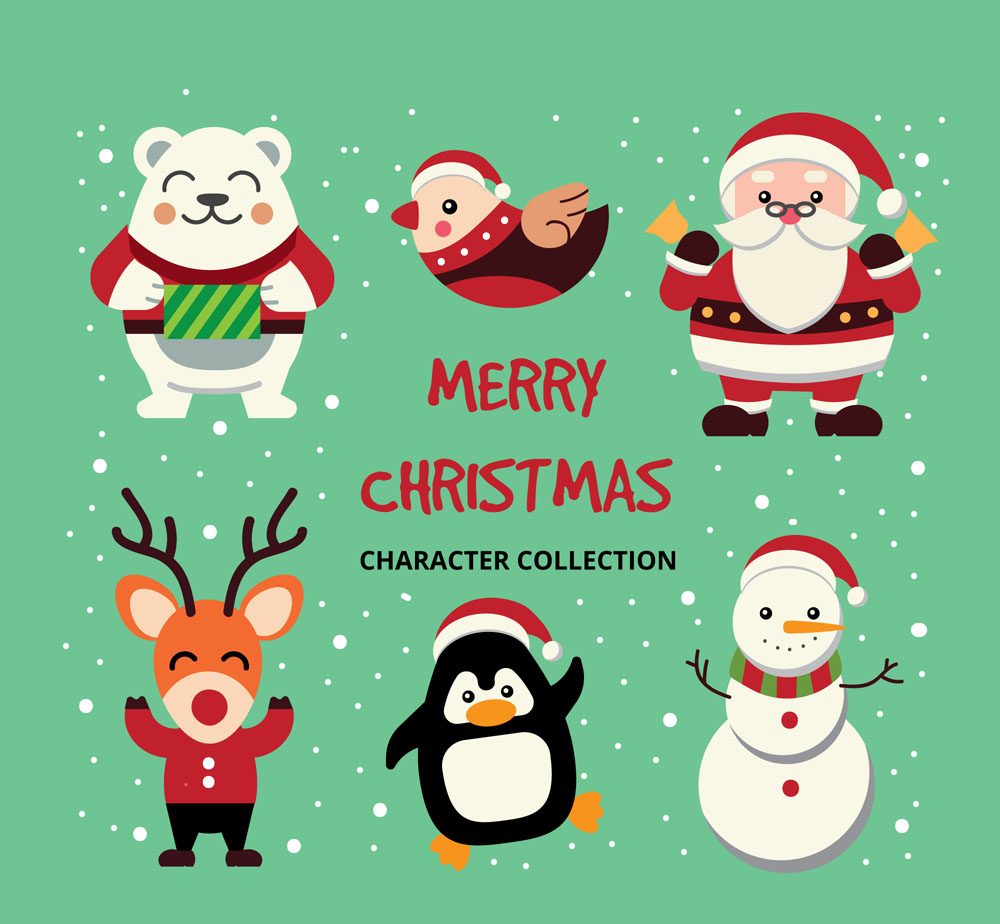 AI格式,含JPG预览图,关键字:北极熊,鸟,圣诞老人,驯鹿,企鹅,雪人,雪花,冬季,快乐,圣诞节,角色,矢量图...