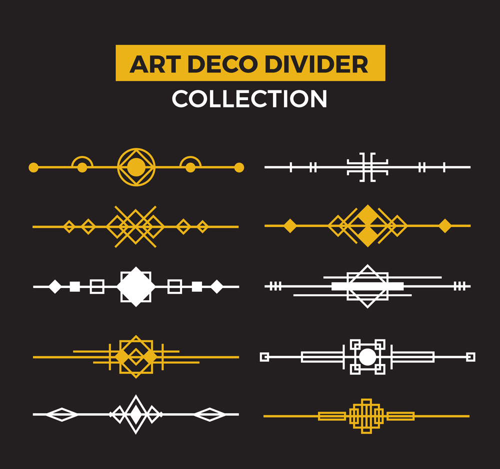 AI格式,含JPG预览图,关键字:art deco,金色,白色,手账,创意,装饰艺术风格,花边,分割线,矢量图...