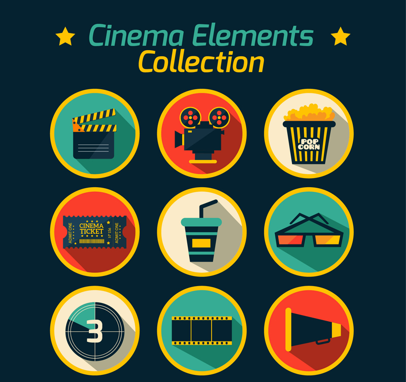 AI格式,含JPG预览图,关键字:场记板,放映机,爆米花,电影票,可乐,眼镜,胶卷,喇叭,电影,图标,圆形,矢量图...