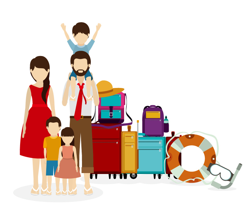 EPS格式,含JPG预览图,关键字:无表情,孩子,父亲,母亲,男子,女子,男孩,女孩,游泳圈,潜水镜,行李箱,度假,家,家庭,矢量图...