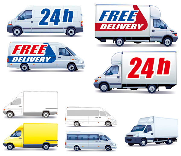 EPS格式,含JPG预览图,关键字:24h,24小时,运输,汽车,货车,物流,free delivery,矢量图...