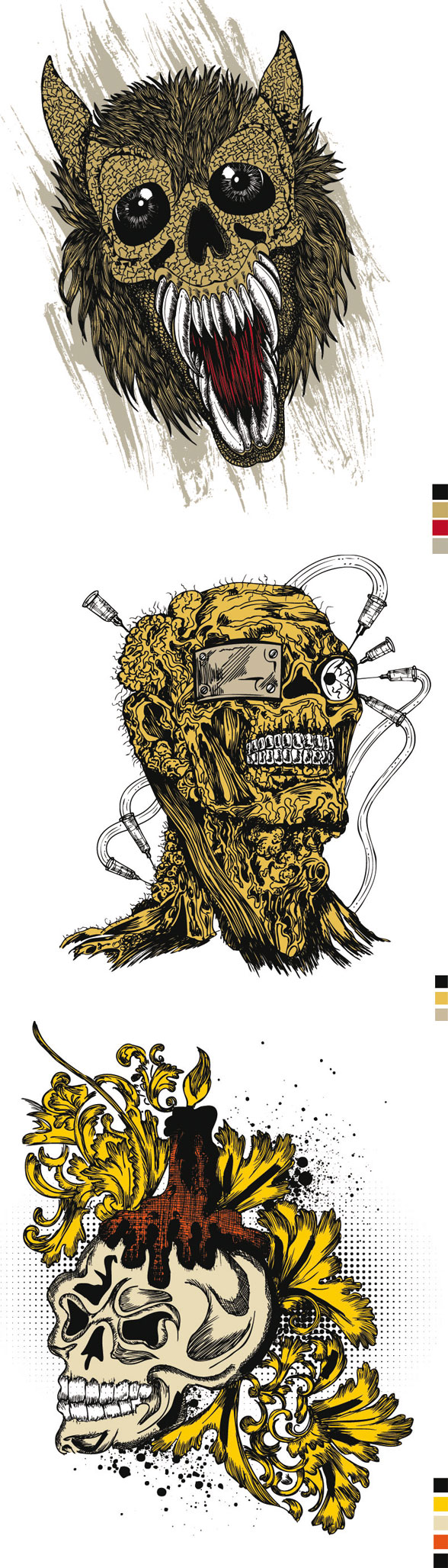 EPS格式,含JPG预览图,关键字:矢量骷髅,印花,T恤,图案,潮流,个性,另类,矢量图...